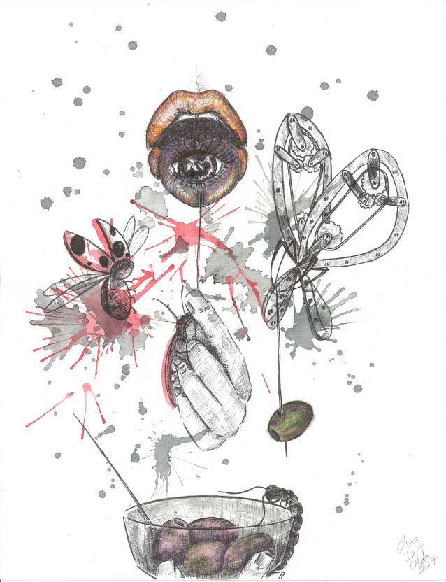 Aquarelle and black pen on paper. 30x40cm